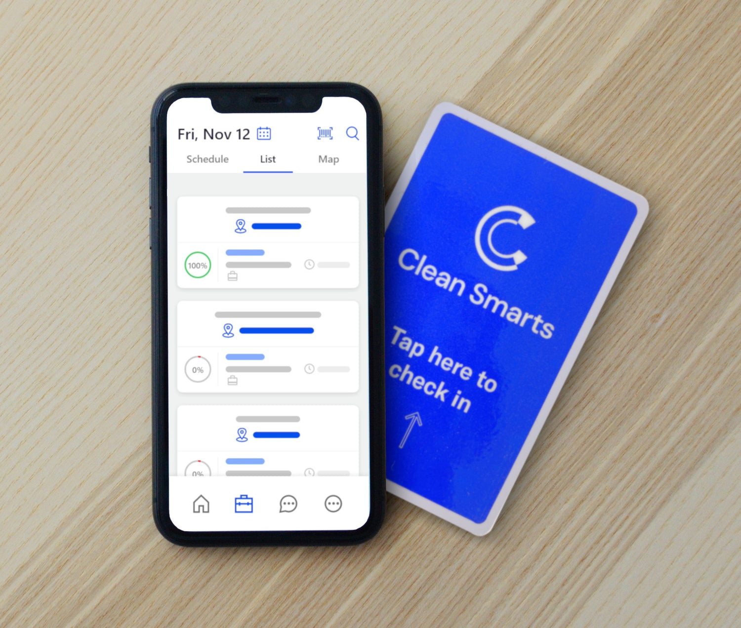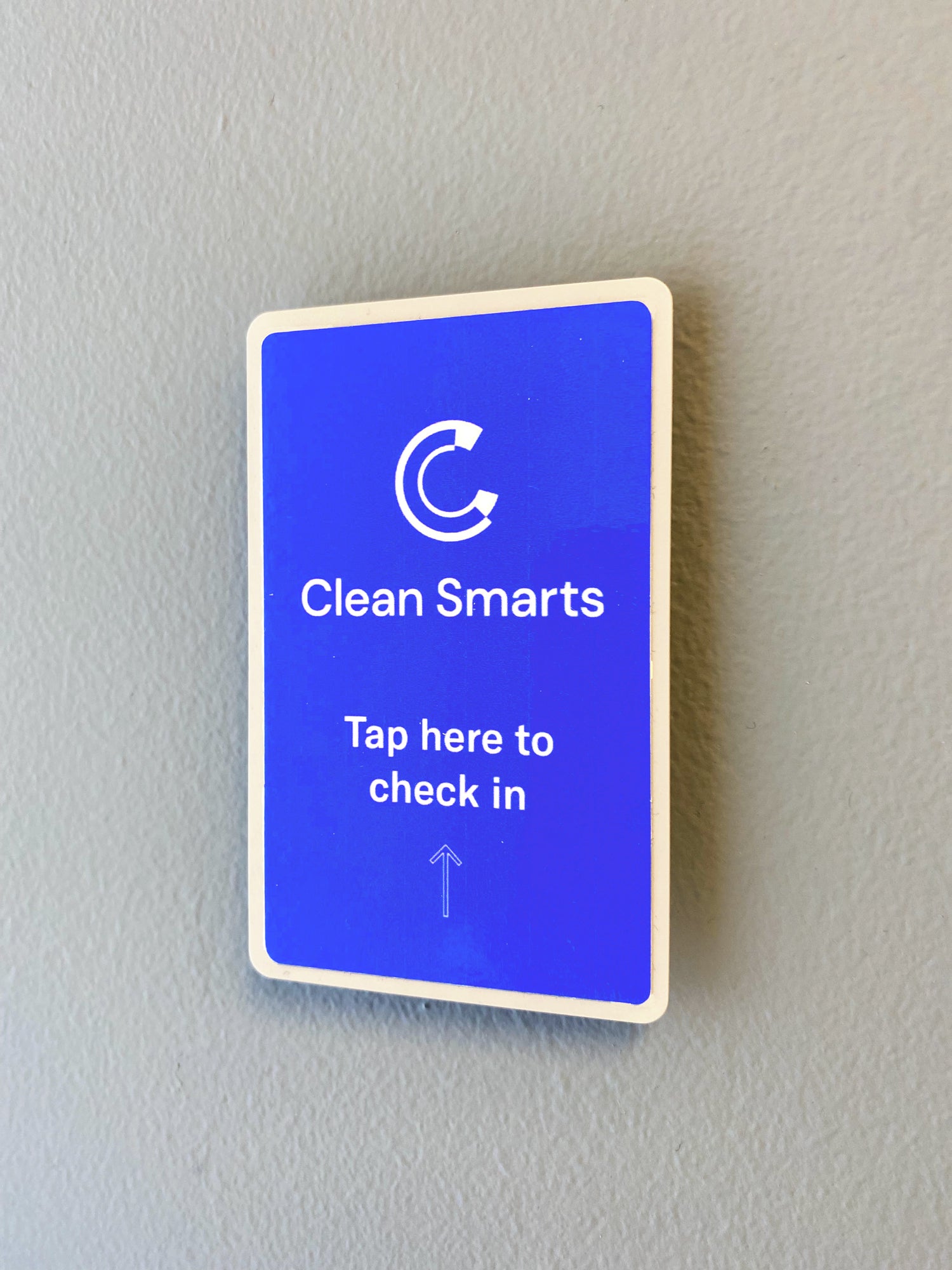 The Clean Smarts Check-in Tag uses NFC technology to provide a more secure way of having cleaners clock in and out of their shifts. Cleaners can easily clock in or out by simply placing their phone next to the tag.